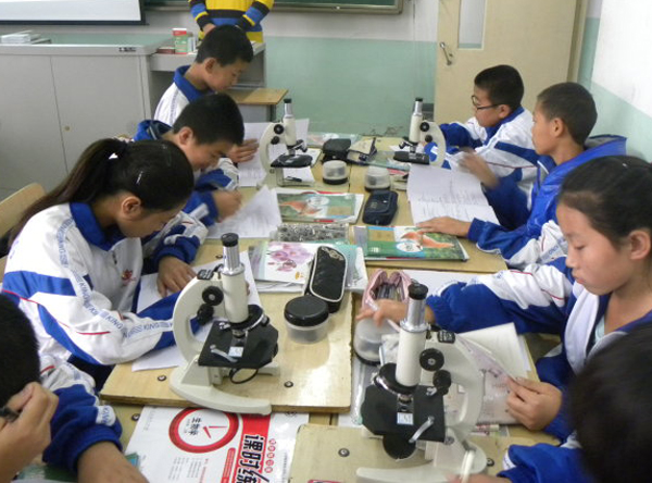 學(xué)生興致勃勃的觀看切片